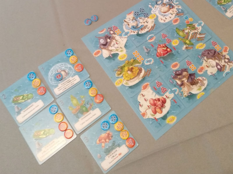 Le draft est efficace et s’opère toujours de la même façon : on reçoit 4 cartes, on en garde 2 cartes, on en passe 2 autres au voisin de gauche. Puis, on posera 1 des 2 cartes conservées sur notre plateau.