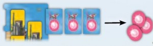 C’est lors de cette phase que nous pouvons interagir avec le marché noir en vendant des ressources précieuses (lampes, pistons, etc), pour avoir des jetons de connaissances.