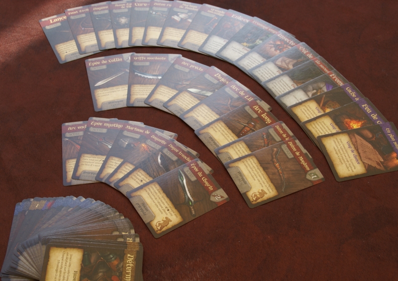Cartes FouilleQuand on réussit son jet de Fouille, on tire une carte : équipements, évènements, ou autre objets spéciaux viendront vous aider (ou pas… car il y a quelques événements négatifs aussi). Certains objets atterriront dans votre sac, d'autres dans la cachette du groupe.