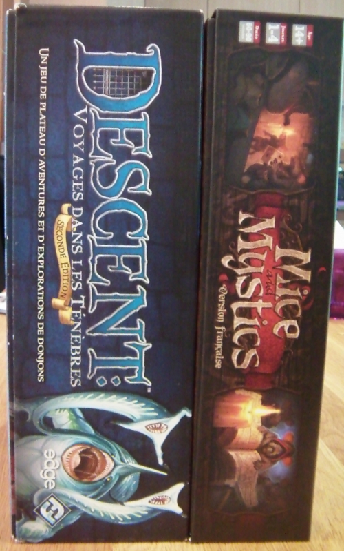 Pour vous faire une idée de la taille de la boite, la voici à côté de celle de Descent, un autre dungeon crawling très différent.