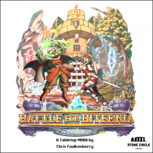 Reboot d’une campagne avortée en mai dernier, Battle for Biternia par Stone Circle Games est un jeu d’affrontement card-driven dont l’ambition est de recréer sur votre table les sensations de jeu d’un MOBA. La direction artistique tape en plein dans le style Pixel art, donc si vous n’aimez pas le genre…