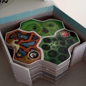 Encore mieux, sur l’autre bord, on fait rentrer tout pile-poil les montagnes de Realms, les montagnes et le volcan d’Undergournd et les tuiles pouvoirs.
