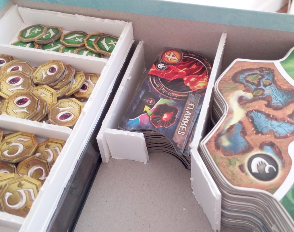 Bonjour tout le monde ! Me revoici pour vous faire partager ma folie pour le rangement des boîtes de jeu et mon goût immodéré pour le découpage du carton plume à la hache.