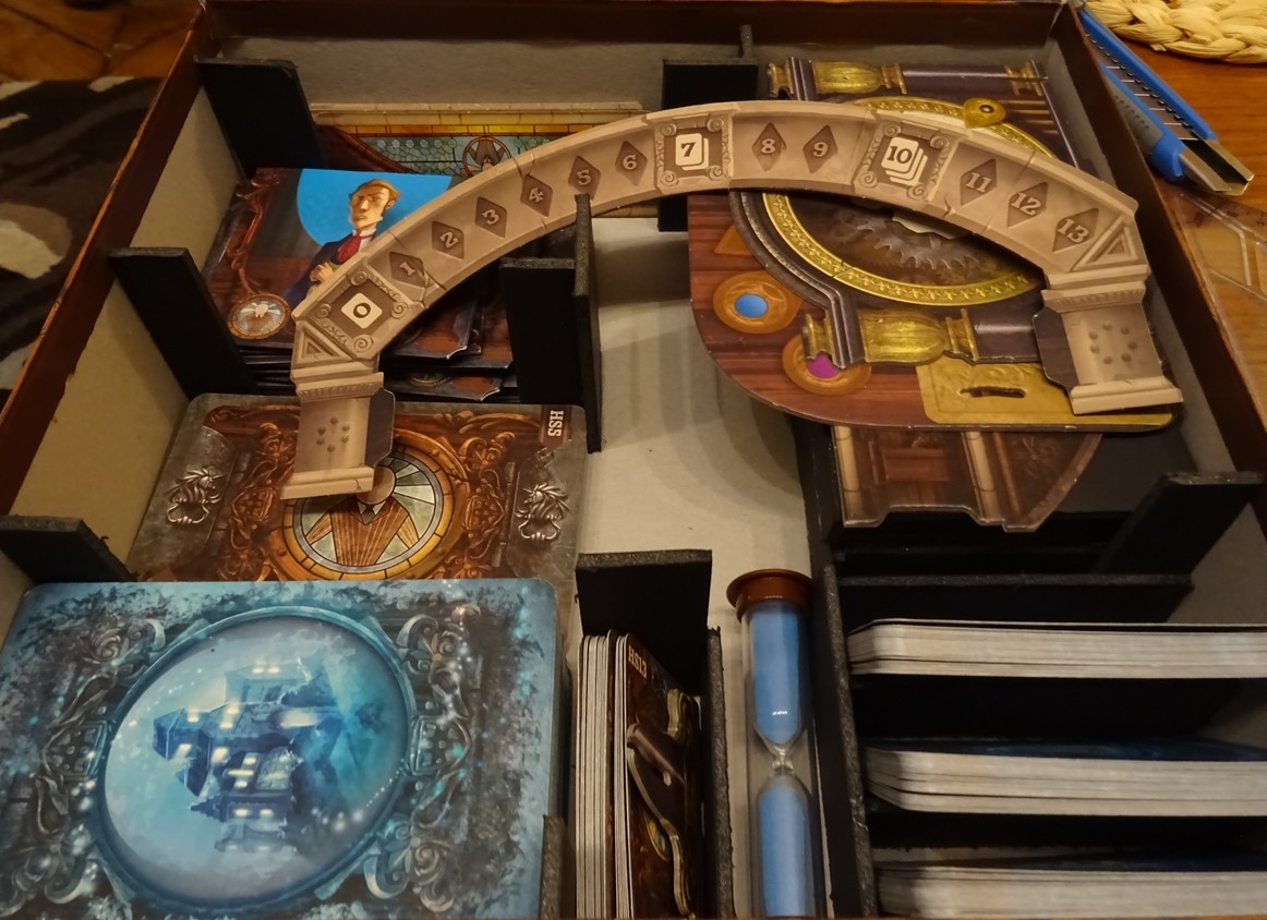 Alors Mysterium, je suis embêté, parce qu’en vrai son thermofromage est plutôt bien foutu quand on a compris comment ranger les choses dedans. Si si je vous assure. Bon, mais ça, c’était avant le drame bien sûr, et l’arrivée de l’extension Hidden Signs. Parce que là ça rentre plus. Cherchez pas, j’ai fait des mesures1. Et donc il va falloir enlever le thermofromage. Ah, bien sûr, la boîte sera rangée verticalement et elle est à ma femme donc faut pas que je me plante.