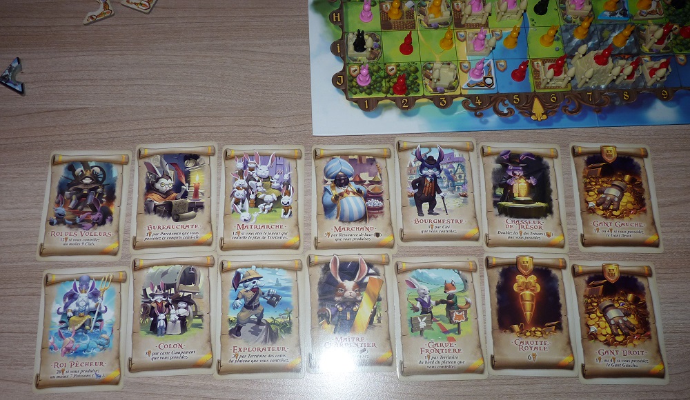 Enfin, on révélera les cartes parchemins récupérées et on gagnera des carottes d’or supplémentaires pour les missions réussies et pour les trésors. Le gagnant sera le Seigneur ayant collecté le plus de carottes d’or.