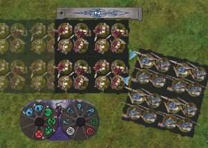 Je n’ai pas lu les règles et me limiterai donc à ce que j’en ai retenu d’après la partie d’initiation : il se peut qu’il y ait des erreurs ou des approximations, et je resterai d’ailleurs assez évasif sur certains points, par précaution. De même, je n’ai aucune idée des règles qui régissent la constitution des armées. Je ne sais pas non plus comment se fait la mise en place des unités au début de la partie.