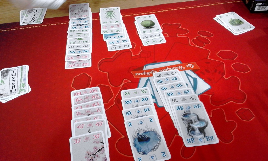 Ohanami s’inspire donc pas mal de The Game mais parvient à s’en éloigner en créant quelque chose d’autre. Le jeu n’est pas plus facile, on défausse parfois des cartes pour ne pas avoir à s’auto-torpiller, on espère les bonnes valeurs mais les voisins veillent et, si cela ne les pénalise pas, ils ne vous feront pas de cadeau. Il faut être un peu chanceux, vigilant et faire les bons choix.