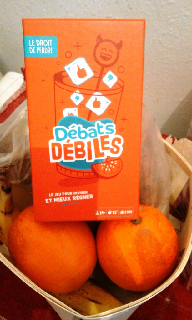 Inventé à la base pour des ateliers philo, ce concept est devenu un jeu. S’il y a un bon point dans ces débats, c’est celui de restreindre les possibilités en imposant de piocher dans les mots proposés. Trop souvent ce genre de jeux écarte les joueurs un peu timides ou moins créatifs, ici au moins, on peut toujours, même si ce n’est pas à mourir de rire, trouver une question. Ce sera le reproche que feront les gens habitués à la narration, il est possible de délirer mais à court terme, puisqu’on doit trouver une question fermée et non raconter sa vie. (La règle nous dira plus loin que l’on est pas obligés de suivre la règle et que l’on fait ce qu’on veut, que l’on peut prendre un mot, le transformer, etc. Bon, faudrait savoir…!)