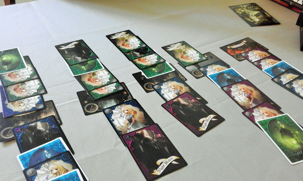 Vous placez deux cartes à chaque tour, où vous voulez, et piochez pour avoir 3 cartes en main. Ces fillettes un peu sages vont être malmenées par d’autres personnages placés face cachée sur le lieu.