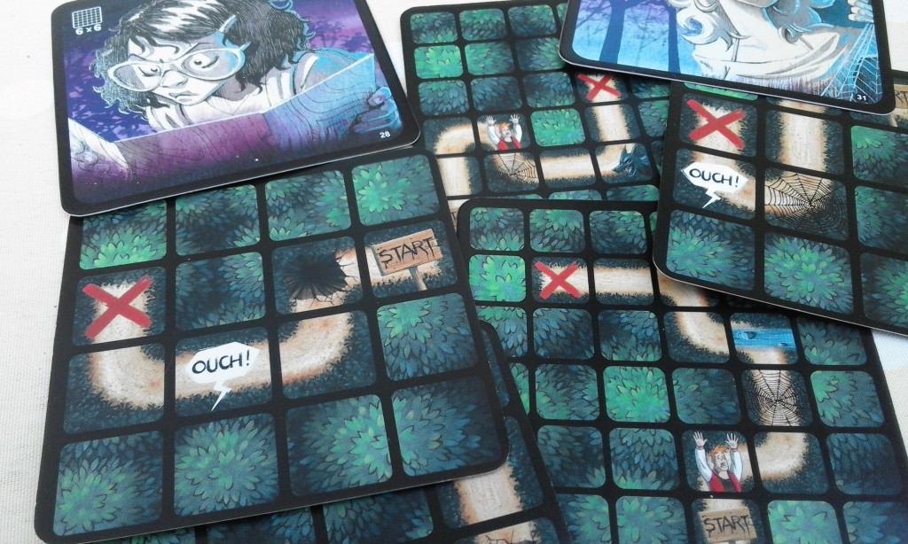Y aller mais où, il fait si sombre ! Votre but sera donc le suivant : aller du point A au point B à l’aveugle. Le parcours vous ne le connaissez pas, il est symbolisé par une grille de 6×6 carrés ou 4×4 (pour débuter), et ce parcours, il vous faut le découvrir en tâtonnant. Pour ce faire, proposez une direction et un autre joueur vous répond : « Droite ? » « non », « Gauche ? » « non », « Tout droit ?» « ok ». À chaque erreur, retour au départ, autant dire qu’il vous faudra plusieurs essais… et de la mémoire. Surtout qu’entre temps les autres joueurs auront tenté d’avancer sur LEUR grille et vous auront brouillé l’esprit. C’est encore pire à la deuxième partie où les relents du premier parcours se mélangent avec la partie actuelle !