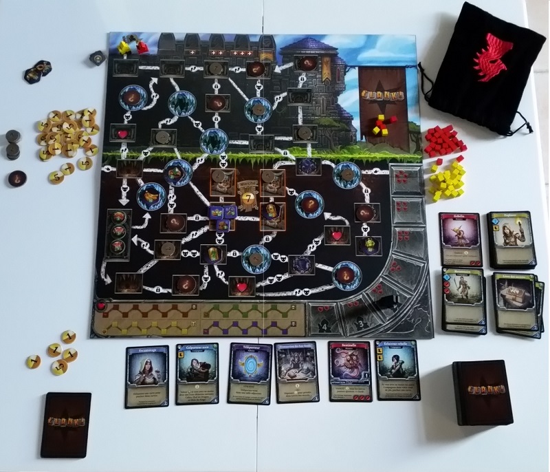 De quoi s’agissait-il? Et bien d’un jeu de deck building médiéval où on nous propose de nous déplacer sur un plateau pour aller piller des trésors mais en faisant attention à pouvoir ressortir vivant des profondeurs démoniaques. Donc un mélange de deck building, de plateau et de stop ou encore.