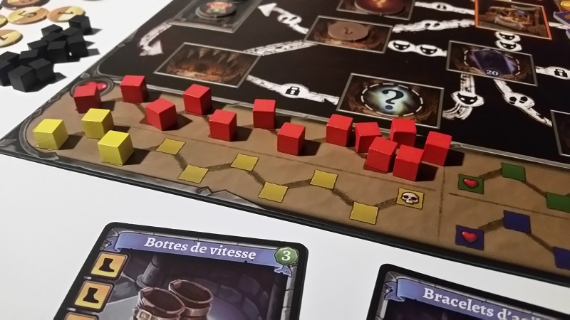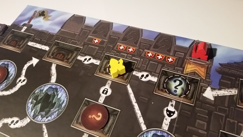 Mais on gagne comment? En sortant vivant du château lorsqu’un joueur a été tué (10 blessures accumulées), là on a 4 tours pour sortir et seuls les survivants pourront compter leurs points.