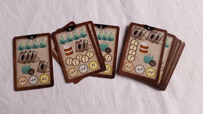 Comme je viens de le dire, le solo de Neta-Tanka fonctionne selon un système de cartes objectifs qu’on tire avant de commencer la partie. En fonction de notre maîtrise (ou inconscience) des mécanismes du jeu, nous avons le choix entre 3 niveaux de difficulté : 5 cartes faciles, 6 cartes normales, 4 cartes difficiles. Soit un total de 15 cartes pour éprouver notre capacité à gérer notre tribu. En termes de rejouabilité c’est top.