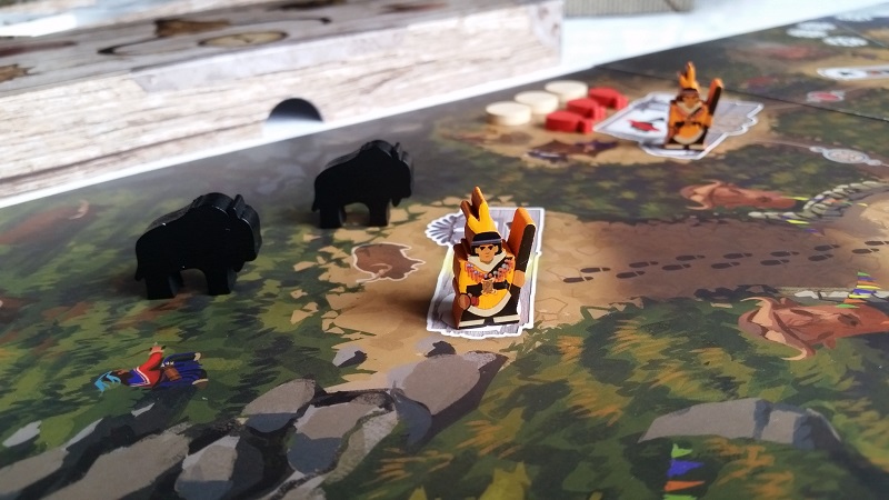 Un dernier mot sur le travail de thématisation fort appréciable, c’est beau et richement illustré. Quant au matériel, il est soigné aux petits oignons sur la version Deluxe comparée à la version boutique qui est plus dans les standards de qualité (et qui fait l’impasse sur les plateaux perso en carton double épaisseur, les pions en forme de nourriture ou de tipi, la mini-extension La Montagne, etc).