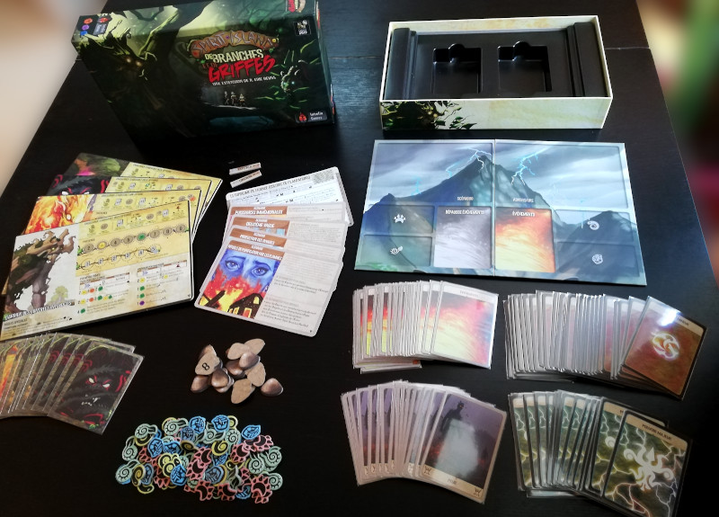Tous les éléments de l’extension s’intègrent et nourrissent le jeu de base et vont donc augmenter sa durée de vie. Il n’y a pas de composante « stand alone », contrairement à une certaine tendance actuelle observée dans les extensions de jeux coopératifs (Robinson Crusoe ou This War of Mine par exemple). Ainsi vous retrouverez un lot classique d’éléments basés sur le modèle d’origine : une extension du plateau Envahisseur, des cartes Peur, des cartes Désolation, 4 Esprits, 4 scénarios et un adversaire supplémentaire (les Français, satanés planteurs de canne à sucre !).