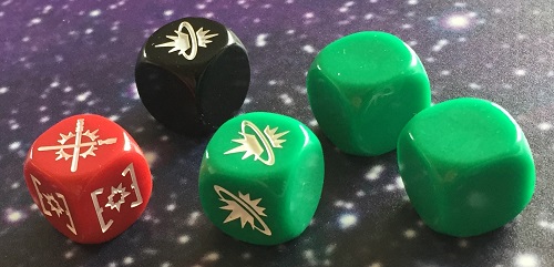 Les nouveaux dés verts, au nombre de trois et n’ayant que deux faces efficaces