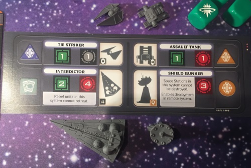 Cet état de fait complique la tâche des Rebelles dont certaines cartes objectifs demandent de détruire un Star Destroyer lors d’un combat où ils sont les attaquants. D’un autre côté, cela laisse normalement plus de chance aux Rebelles de retraiter en cas d’attaque impériale. Je ne sais trop que penser de ce renversement, mais sachez que cela modifie pas mal la tactique du jeu.