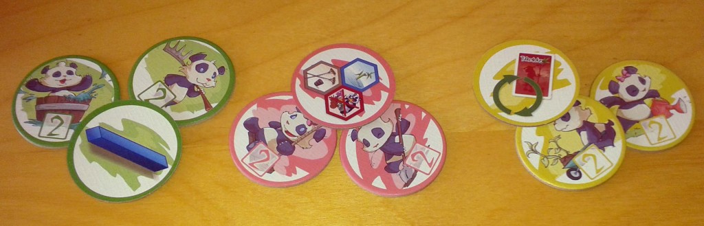 Comment ça se passe ? Lorsque vous accomplissez une action panda, vous avez le choix entre déplacer Monsieur Panda qui va se remplir la panse, ou Madame Panda qui va rejoindre son mâle pour procréer. Si vous choisissez la deuxième option, vous devez dépenser un tronçon de bambou de votre réserve comme cadeau de noce, et en échange vous récupérez un jeton Chibi. Chacun de ces jetons vaut 2 points de victoire lors du décompte final, et vous accorde également un petit bonus.
