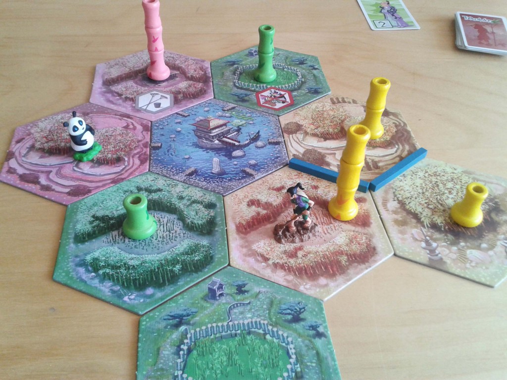 Takenoko est le jeu familial par excellence : clair, attractif, mignon, fluide. Il se joue en moins d’une heure avec un groupe de taille modeste (2 à 4 joueurs). Il n’y a aucune confrontation directe entre joueurs, ce qui permet d’épargner les susceptibilités les plus chatouilleuses. Très directif, le jeu guide le joueur à travers une succession de choix restreints qui forment un espace de jeu confortable et lisible. Tour après tour, les joueurs prennent des décisions aisées basées sur leurs buts à court terme, et sans qu’on comprenne trop pourquoi une bambouseraie luxuriante se répand sur la table. Si l’on était pas si occupé à aligner les plants et à s’inquiéter de la météo, on pourrait prendre cinq minutes pour admirer ce petit écosystème coloré qui a surgi tout seul durant la partie.