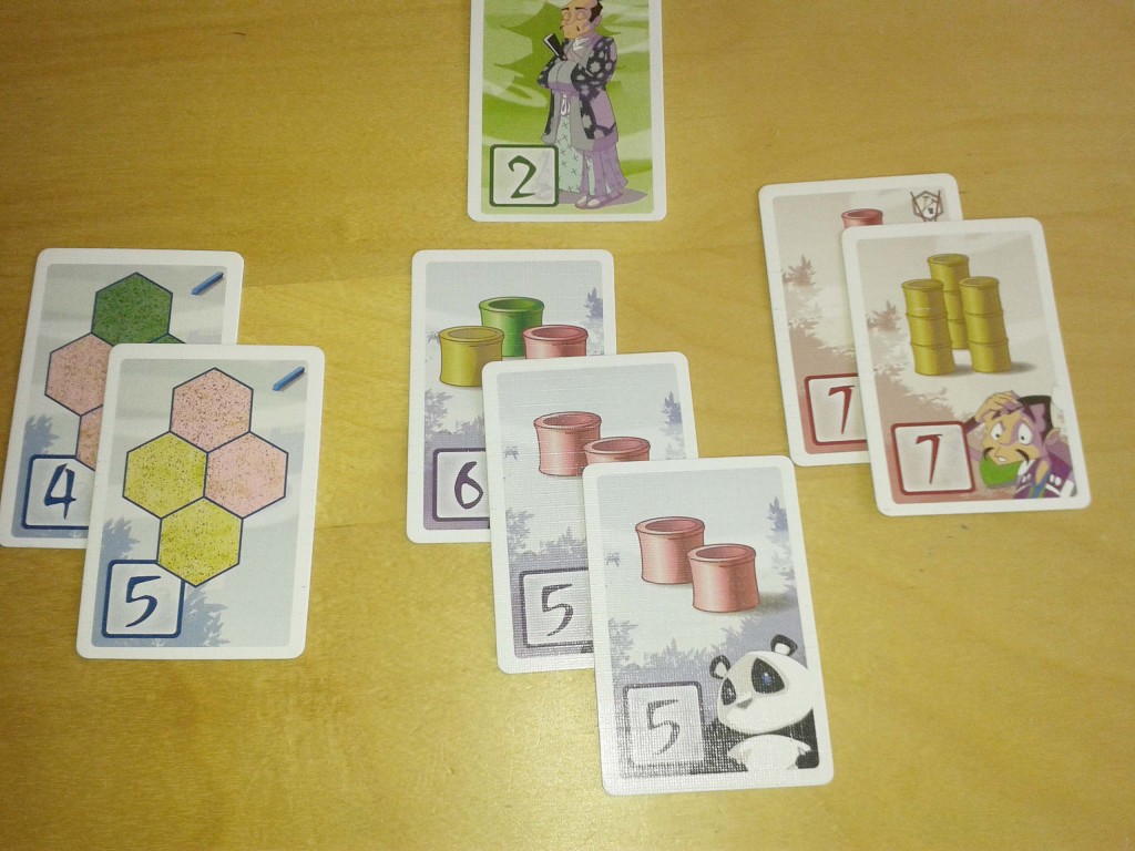 - Les objectifs bambou sont attractifs parce qu’ils rapportent beaucoup de point par carte, et qu’on peut compter sur les actions des autres joueurs pour faire pousser les bambous dont on a besoin. Mais la chaîne de production est longue (placer des parcelles, les irriguer, déplacer le jardinier à répétition pour faire grandir les bambous…) et le résultat est incertain : un panda malvenu ou un bambou qui pousse trop haut compromet l’objectif et vous obliger à rectifier l’erreur avant de pouvoir le marquer. Long mais gratifiant, ces objectifs sont faits pour les joueurs qui visent les scores haut perchés.