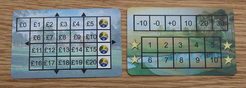 Au début, chacun reçoit une carte représentant son club house, qui comprend une piste pour l’argent (on commence à £10) et quatre emplacements pour les ressources. Au verso de cette carte se trouve, le tableau de score de fin de partie.