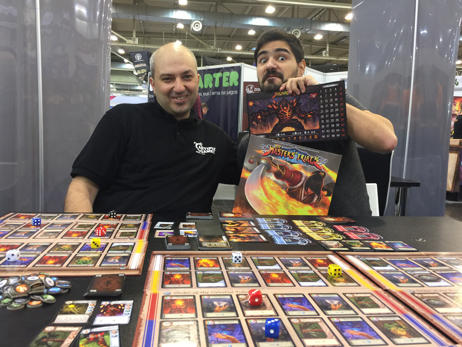 C’est parti pour la troisième journée de tournage avec les grecs d’Artipia ! En partant du système de Dice City, ils sortent cette année un jeu de « dungeon crawling » light en donjon et riche en développement de personnage avec The Master’s Trials: Wrath of Magmaroth.