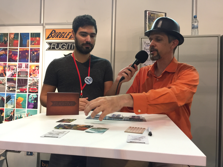 Fugitive fait partie des petits buzz indé du salon, de ceux dont on entend parler une fois, deux fois, trois fois, au détour des couloirs. Ce jeu de Fowers Games est une sorte de Netrunner-lite : jeu de fuite pour un des deux joueurs, jeu de déduction pour l’autre. Tim Fowers avait envie de s’amuser un peu avec l’asymétrie et hop ! Ça fait des Fugitive. Burgle Bros n’a qu’à bien se tenir.