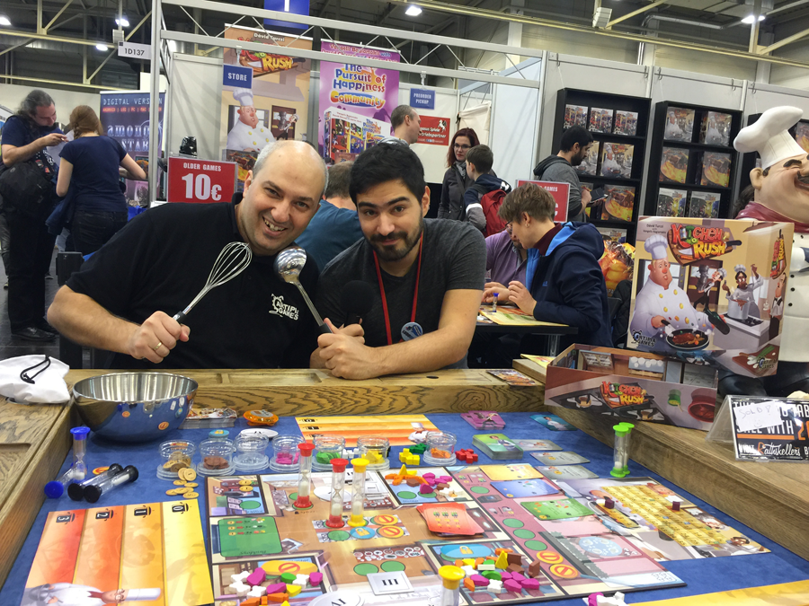 Kitchen Rush nous prolonge dans la coopération, mais cette fois-ci en temps limité. Etes-vous prêts pour le « coup de feu » des cuisines ? Dans les manches de quatre minutes, les joueurs vont effectuer du placement d’ouvriers avec des sabliers qu’on ne pourra ôter de leur emplacement que quand ils seront écoulés. Frénétique, probablement éminemment fun, il s’adapte aussi à son public. Une belle table géante conçue sur mesure permettait d’attirer le regard du chaland avec succès. Ceux qui ont essayé en disent du bien, mais on revient dessus de façon plus poussée bientôt.
