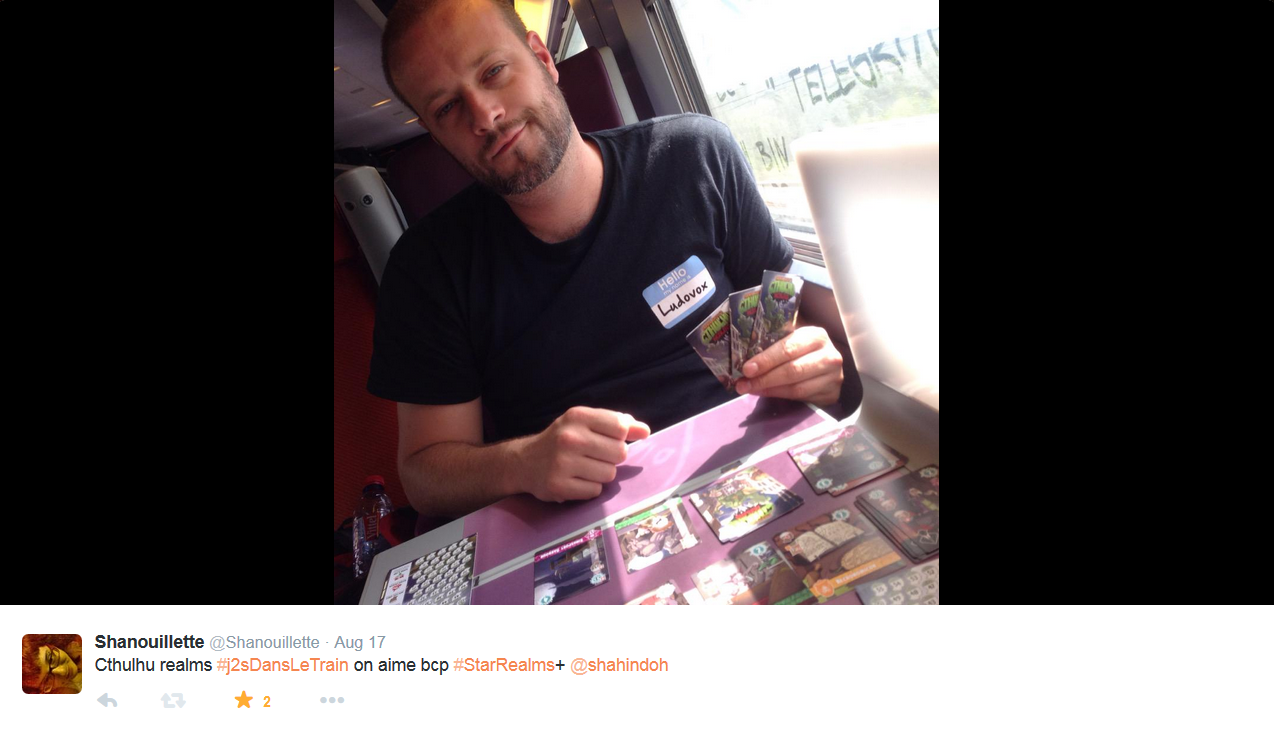 Quand nous sommes en déplacement nous avons toujours un petit jeu sur nous. On s’assoit à une terrasse ? On sort un Siggil. On est sur la plage ? On joue à Coyote. On est dans le train ? Hop, Tides of Time ou Cthulhu Realms. Ce qui nous fait rire sous cape, c’est les regards en biais des passants. Les adultes matent le jeu et se questionnent, parfois on voit même une petite touche d’envie, c’est évident. Mais malheureusement ils osent rarement s’approcher. Ce qui est génial, c’est les enfants. « Ha ! Moi aussi j’ai emmené un jeu ! C’est quoi le votre ?  » ou carrément « Je peux venir jouer avec vous ? ». Autant vous dire qu’on est alors ravis d’expliquer les règles !