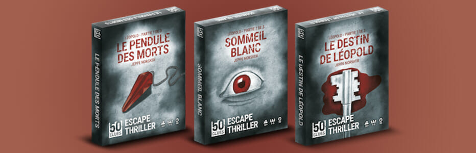 50 clues est le nouveau jeu de Jeppe Norsker, que vous avez pu croiser sur Bermuda Pirates (pour une toute autre ambiance !). Il s’agit d’un Escape game pour 1 à 5 joueurs et des parties de 90 minutes environ mais au parti pris adulte (16+ dit la boîte). En effet, le jeu est recommandé pour un public averti car les thématiques abordées, certains contenus graphiques et des choix à faire peuvent heurter la sensibilité des plus jeunes joueurs.