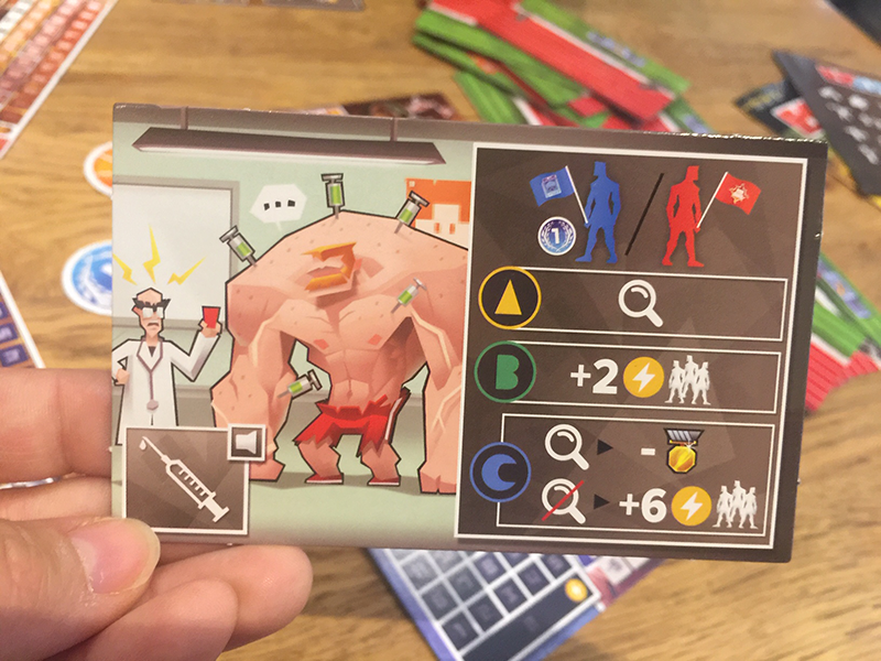 Vous les révélerez une à une, promesse de rejouabilité. Outre le fait de ne pas avoir toujours les mêmes sports, ceux-ci n’apparaîtront pas dans le même ordre, c’est important pour votre gestion des points à engager (vous partez avec 25 points d’énergie). Si les épreuves sont variées, la base ludique est souvent similaire : parier son énergie. Plus vous misez, plus vous gagnez, mais rappelez-vous, ce jeu se gagne sur la durée, que se passera-t-il si vous n’avez plus de jus ?