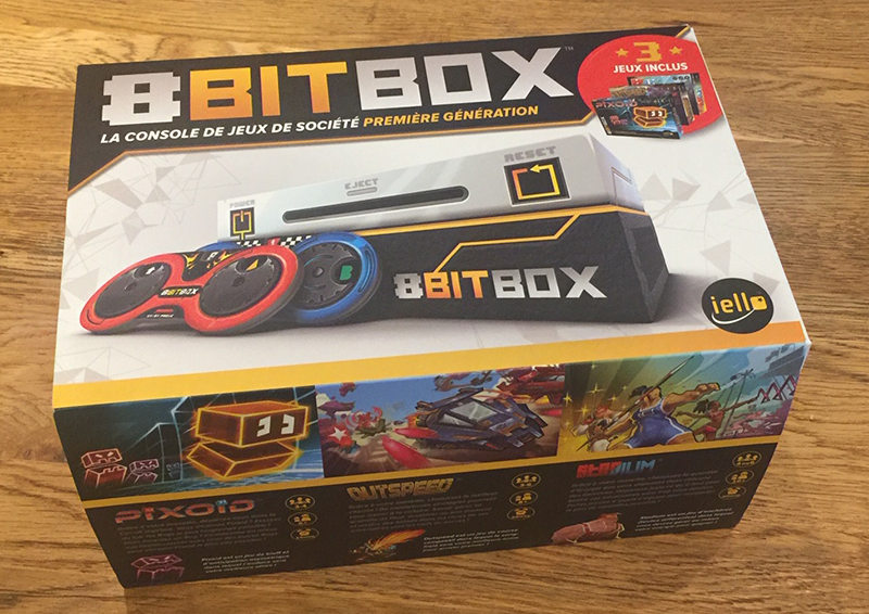Quand on habite pas loin de chez Iello, à Nancy, on a de petits avantages (vraiment petits, je vous rassure) : on voit parfois débarquer dans sa boutique préférée les hommes en jaune (en vrai, ils s’habillent comme vous et moi) avec leurs nouveautés sous le bras. Et là, la grosse nouveauté de la rentrée chez Iello, c’est la 8 Bit Box, une console en carton, avec des manettes en carton et des jeux…en carton. Mais je la branche où ?