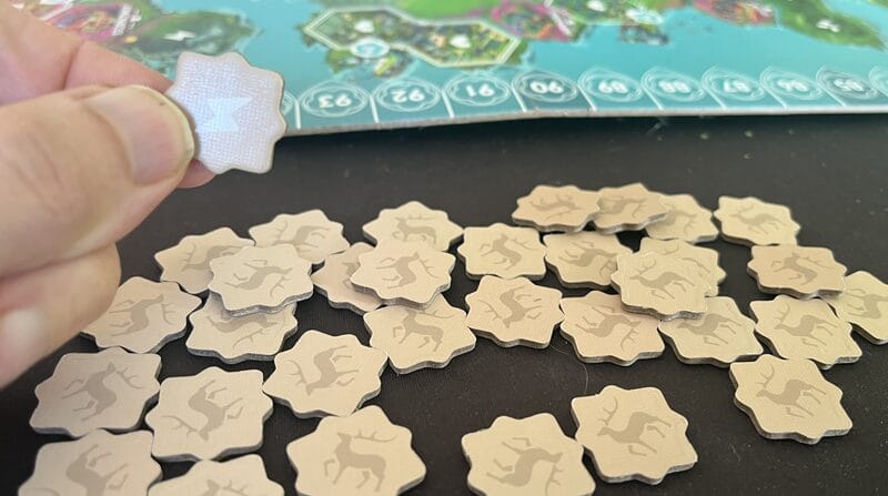 Deux petits bémols, d’abord pour rester à un prix plancher, cette version utilise des jetons en carton, largement suffisant, sauf peut-être pour le jeton de score, on aurait aimé quelque chose de plus pratique, mais c’est vraiment pour pinailler. La règle du bris d’égalité manque un peu d’élégance.
