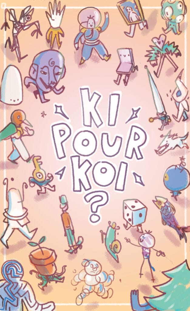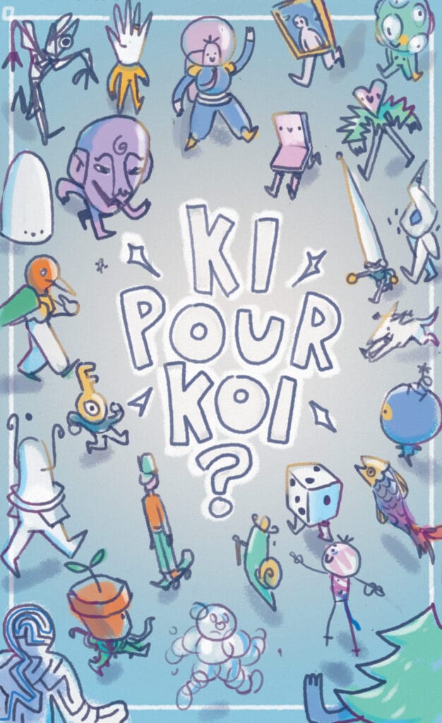 Lorsque je suis venu présenter Kipourkoi, mon jeu était proche de sa version définitive. Cela ne nous a pas empêché avec l’équipe de Blue Orange de questionner chacune des règles, afin d’expérimenter et de voir ce qui sied le mieux au jeu. L’objectif étant de créer un jeu pour toute la famille, original et drôle avec un univers farfelu et poétique. Après quelques ajustements de règles, j’ai pu travailler sur le visuel de la boîte et ajouter quelques cartes questions et le tour était joué. J’espère qu’il plaira autant au public qu’à tous mes amis et si c’est le cas je serais ravi de créer de nouveaux zigotos…