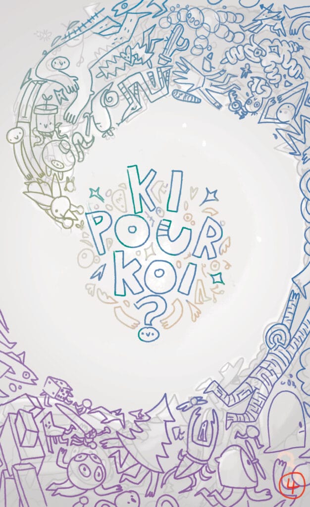 Les gugusses, les zigotos, les bonshommes, m’accompagnent depuis toujours. Ils étaient déjà présents dans le coin de mes cahiers de cours. Ces zigotos sont créés tout spécifiquement pour permettre la meilleure expérience de jeu. J’ai pensé qu’il serait idéal pour Kipourkoi d’avoir des personnages plus variés les uns que les autres mais dans un style graphique marqué et lisible, afin qu’on ait l’impression qu’ils sont tous voisins. Certains n’ont plus de tête mais je suis convaincu qu’ils s’entendent très bien avec ceux qui en ont deux.