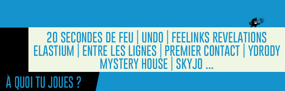 À quoi tu joues : Premier contact, Ydrody, Entre les lignes, Mystery House, Feelinks Revelations, Elastium, Undo, Skyjo…