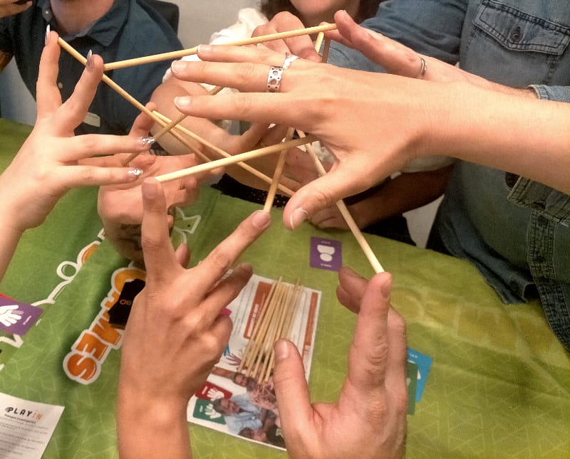 Et pourtant le jeu n’est pas si facile, car même si le concept est évident, arriver à garder tous les joueurs connectés entre eux par ces petits bâtons de bois constitue un véritable challenge. Il vous faudra de nombreuses parties avant d’arriver à faire une sans-faute. Le jeu est d’autant plus dur, et donc drôle, que vous êtes nombreux autour de la table. Arriver à connecter les mains de 7 ou 8 joueurs est un challenge assez mémorable, où la moindre petite erreur déclenche l’inévitable explosion de la construction – et les fous rires (ou les engueulades du fautif selon l’ambiance).