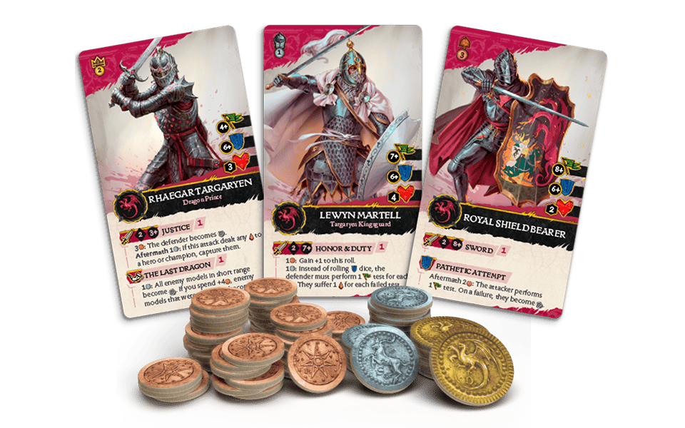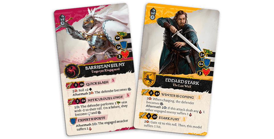 Bien sûr, chaque groupe est composé de personnages célèbres auprès des connaisseurs des Sept Royaumes (Eddard Stark, Roose Bolton, Barristan Selmy, Jon Connington..) et chaque camp se verra renforcé par d’autres unités (gardiens, chevaliers, gardes et porteurs de boucliers).