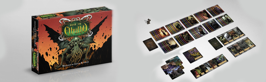 Dingue ça ! Avec tous les jeux estampillés Cthulhu aucun ne s’appelait encore Rise of Cthulhu ! Franchement, j’en reviens pas. Le KS est pourtant là pour vous le confirmer. Vous pouvez même pledger, puisqu’ils livrent partout dans le monde. C’est la puissance du réseau des cultistes ça. L’auteur du jeu, C. Yager à écrit qu’il était un fou-dingue de Lovecraft et qu’après s’être bien usé sur les Arkham Horror, Eldritch Horror, Mansions of Madness, Elder Sign et autre Witch of Salem, il a eu envie de créer son jeu Cthulhu à lui, mais un truc facile d’accès, rapide, transportable, pour pouvoir Cthulhiser partout.