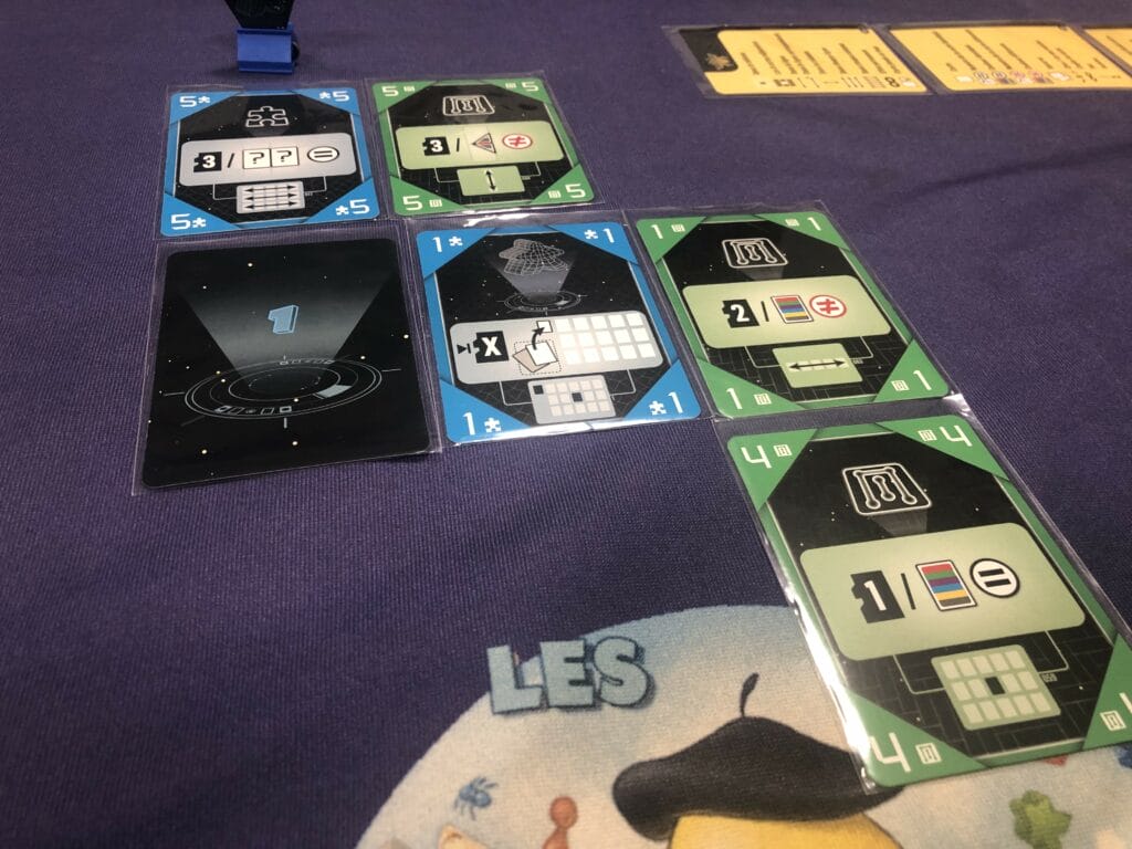 Vous démarrez avec une carte IA qui représente le centre de votre tableau building, à la fin de la partie vous aurez un tableau de 15 cartes réparties en 3 lignes de 5 cartes.
