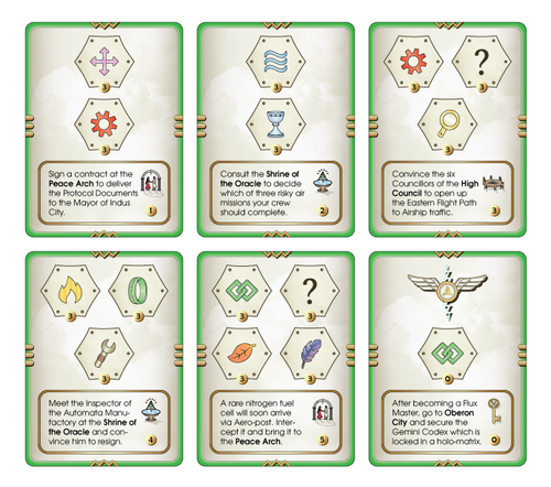Pour débuter, vous lancez 2 dés, cela déterminera votre capacité de déplacement pour tout votre tour : vous pourrez utiliser chaque unité de déplacement comme bon vous semble, en prenant les trains ou les dirigeables qui parcourent la map. Pendant votre tour, vous pourrez récupérer un artefact, abandonner ou compléter une mission, ou utiliser vos capacités spéciales (certaines sont communes à tous les joueurs, d’autres seront votre petite touche perso) comme par exemple pousser un adversaire ou lui piquer un artefact, relancer des dés…