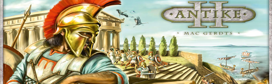Le voilà, il revient, le ca-pi-taine corsaire Mac Gerdts ! Oui, l’inventeur de la roue revient, avec sous le bras une nouvelle boite du jeu Antike, tout simplement nommée Antike II (chez PD Verlag, stand 1-C108).