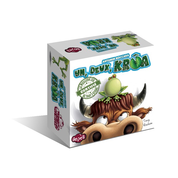 – Un, deux, Kroa ! chez Ilopeli, un jeu mêlant stop-ou-encore et rapidité avec beaucoup d’interaction et une puce sauteuse ! (sortie prévue normalement autour de PEL) .