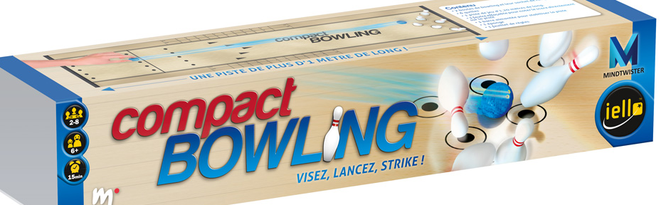 Et oui, ils l’ont fait ! Compact curling était un jeu d’ambiance rafraichissant (si vous voulez vous en convaincre, regardez cette Pause de (presque) midi ça dure même pas deux minutes mais ça vous montre le jeu en action !) et les voilà qu’ils remettent ça avec le Bowling !