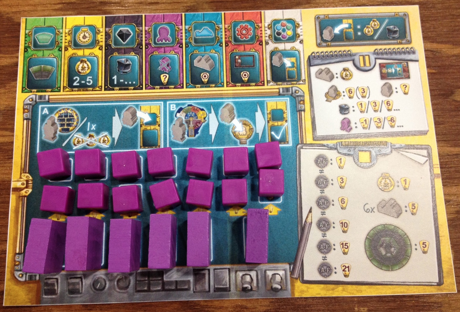 C'est sur BGG que nous pouvons découvrir le bestiau sous forme de prototype. Un embryon déjà bien formé. On voit les bras et les jambes. Regardez bien, il y a deux zones principales : une station de recherche composée de six secteurs dans lesquels votre scientifique mène des expériences et un district d'où votre ingénieur supervise la préparation des robots.