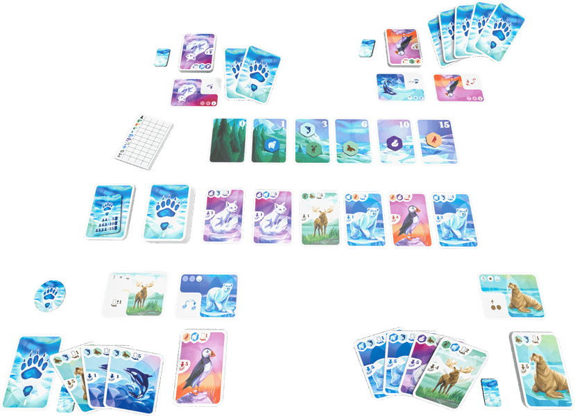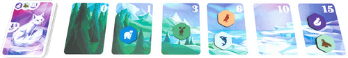 Lorsque la pioche est vide, vous terminez le tour, placez les cartes une dernière fois et marquez des points. Alors, pour chaque type d’animal, vous scorez en fonction de la plus grande série de cartes consécutives de ce type que vous avez dans votre pile. Vous obtenez un bonus en fonction du nombre de séries que vous avez réalisées. Révélez le jeton animal que vous avez reçu au début du jeu et marquez des points en fonction de son avancement dans le paysage. Vous perdez 1 point pour chaque carte de votre pile de pénalité. Le score le plus élevé l’emporte.