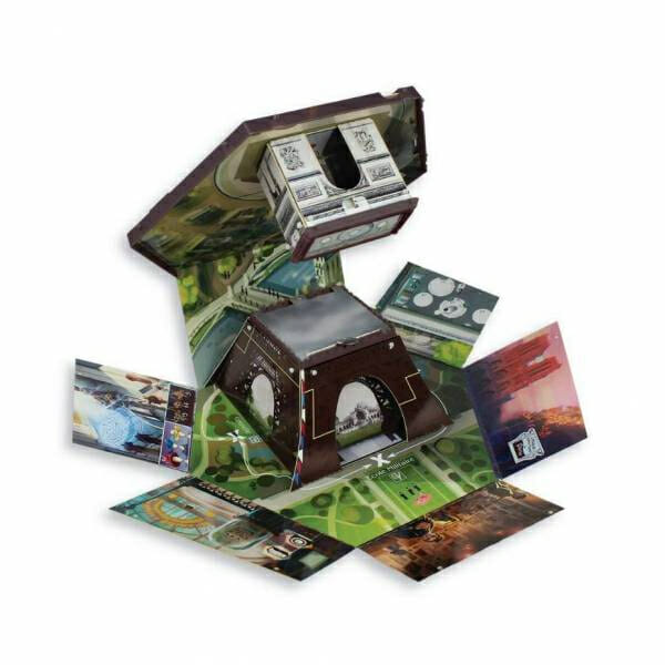 Sur cette boîte, qui se présente d’abord fermée, vous trouverez des petites icônes qui indiquent une carte à piocher. Celle-ci donne aux joueurs une énigme à percer (avec divers niveaux d’indices possibles, qui n’engendrent pas de pénalité) ; une fois l’énigme résolue (à base de codes, de couleur, de symboles etc), vous allez pouvoir vérifier si votre réponse est correcte en glissant une petite languette Solution directement dans la boite. Si le bon symbole apparaît dans la fenêtre, vous pouvez continuer. Pas de panique, on ne vous chronomètre pas. Au fur et à mesure de votre progression, vous pourrez ouvrir des pans comme on épluche une orange et découvrir de nouveaux mystères à décoder jusqu’à parvenir au cœur de la boîte.