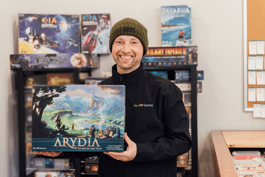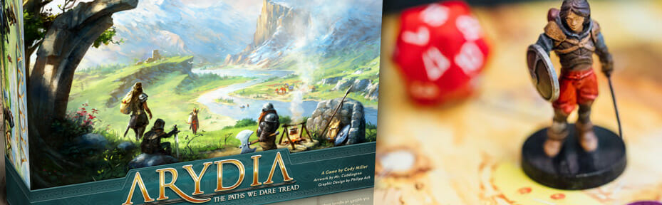 Miller décrit son jeu comme étant un “Green Legacy” : dans la même veine qu’un Pandemic Legacy et Gloomhaven (ouverture de paquets, informations cachées, progression, découverte, exploration…) mais sans aucune modification permanente du matériel de jeu. Arydia sera donc complètement rejouable, mais l’univers dynamique du jeu réagira aux décisions des joueurs. Par exemple les lieux et les personnages changent en fonction des aventures du groupe via un système d’indexation présenté comme simple à installer et à prendre en main.