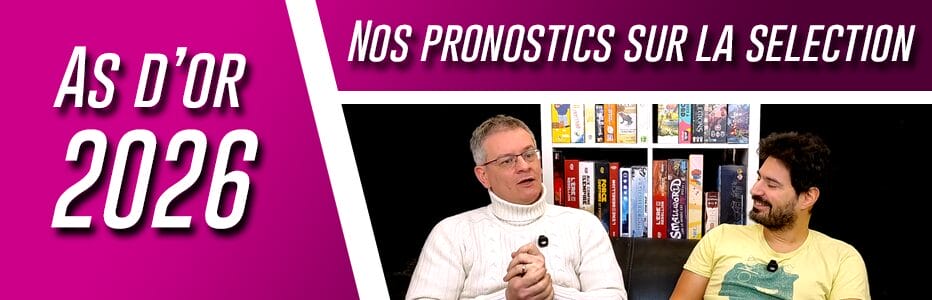 On y est ! Les jeux de société en lice pour l’As d’or 2026 seront annoncés par le Festival International des Jeux de Cannes (FIJ) dans quelques jours ! L’occasion pour nous de passer devant la caméra pour nous lancer dans le grand jeu des pronostics. Cette année, nous coupons notre vidéo pronostics et découverte en deux partie, vous ne trouverez donc ici que les pronostics et les réflexions sur le sélection, et nous découvrirons la sélection officielle la semaine prochaine pour y réagir. Le tout toujours à chaud et sans filtres !