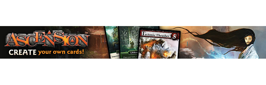 Drive Thru cards a déjà des partenariats avec des éditeurs comme Pegasus Spiel en Allemagne, ils proposent aussi la création de cartes spécialisées pour des jeux célèbres comme Pathfinder. Maintenant ils enrichissent donc leur offre avec Ascension, grâce à un partenariat avec l’éditeur Stone blade Entertainment et Ultra Pro.